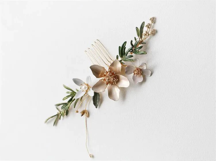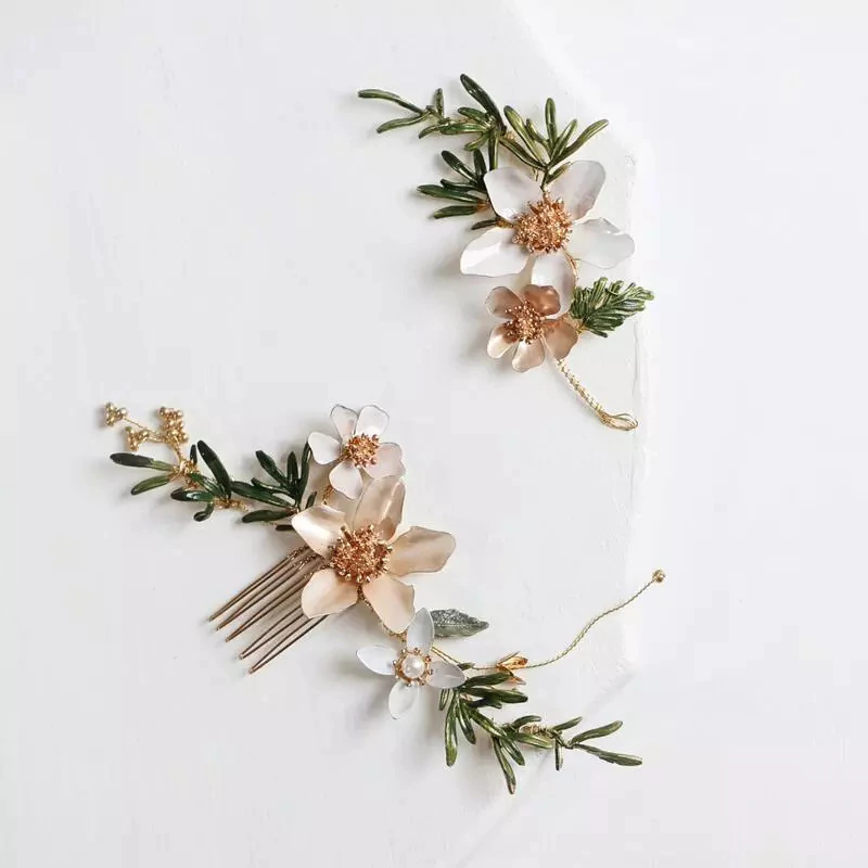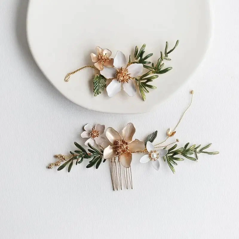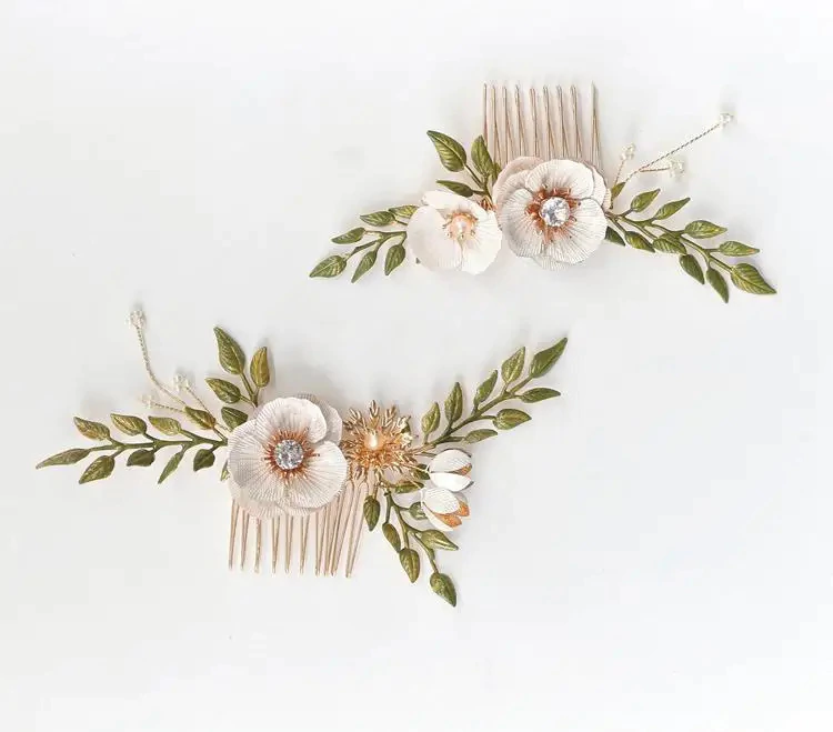 Os Pins Grampos Doux Jardin são elaborados com flores suaves e detalhes intrincados, criando uma peça que adiciona uma aura natural e encantadora ao visual da noiva. Sua versatilidade permite que sejam usados de várias maneiras, proporcionando um toque sutil de beleza floral.
